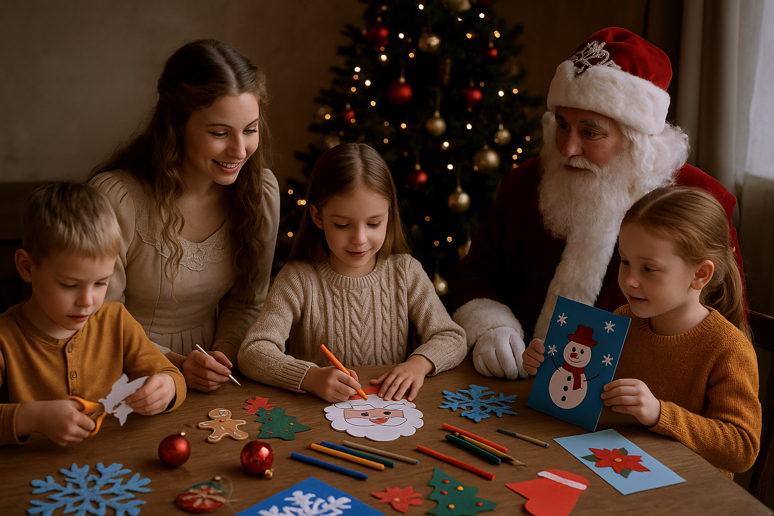 Дети делают ёлочные игрушки, открытки, снежинки, рисуют новогодние маски.